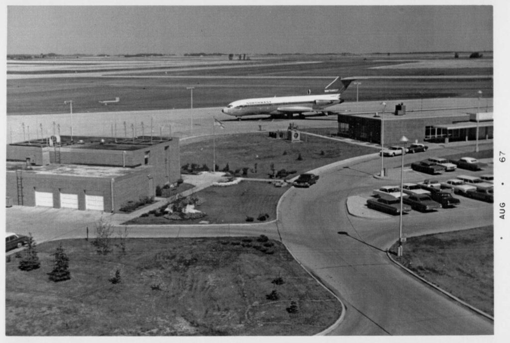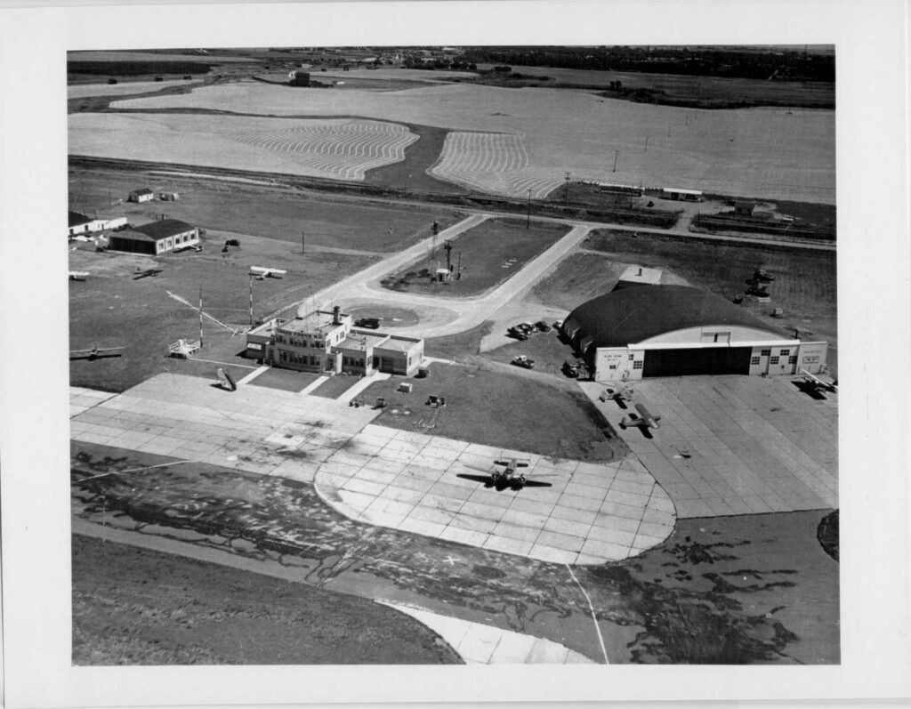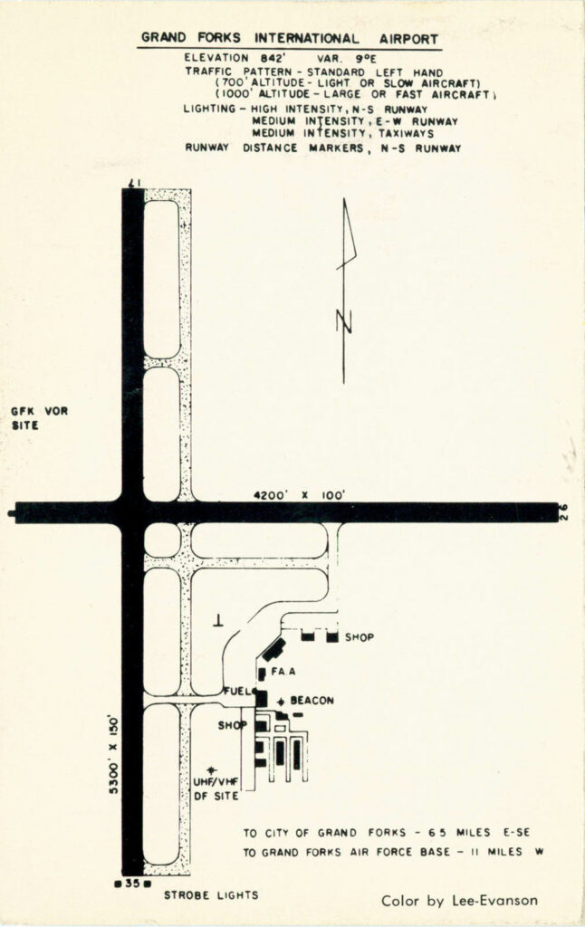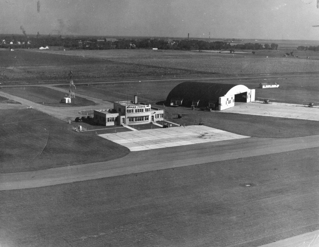 A very important part of our airport’s history is a man named Norman Midboe (1922-2015). Mr. Midboe started working for the Grand Forks Airport in 1941 at age 19, and became manager in 1961. He was at the helm until he retired 23 years later in 1984. His leadership brought many changes to the airport, most of which were written about in the local newspaper. Mr. Midboe was diligent about clipping those articles and keeping them organized in scrapbooks. In 2006, Airport Authority staff member Coleen Peterson was pleased to have had the chance to visit with him and listened to stories about many of his experiences as a pilot and as Grand Forks Airport's manager. We were thrilled that he lent us his airport history scrapbooks so we could have them scanned by the generous staff at the Ellwyn B. Robinson Department of Special Collections at UND's Chester Fritz Library. Mr. Midboe subsequently donated the scrapbooks to the library, who provided this link to their information regarding the Midboe Collection. Interestingly, the there is mention that the Collection includes a transcript of a speech by Midboe entitled "Airport History: Old Grand Forks International Airport", that was delivered at the Grand Forks Aviator's Pioneer Banquet on February 28, 1976. Curt Hanson, the current head of Special Collections, generously provided us with the transcript (click link above), saying the Midboe Collection is quite a treasure, and that UND's Aviation History class visits every year to look at it.